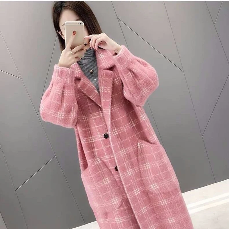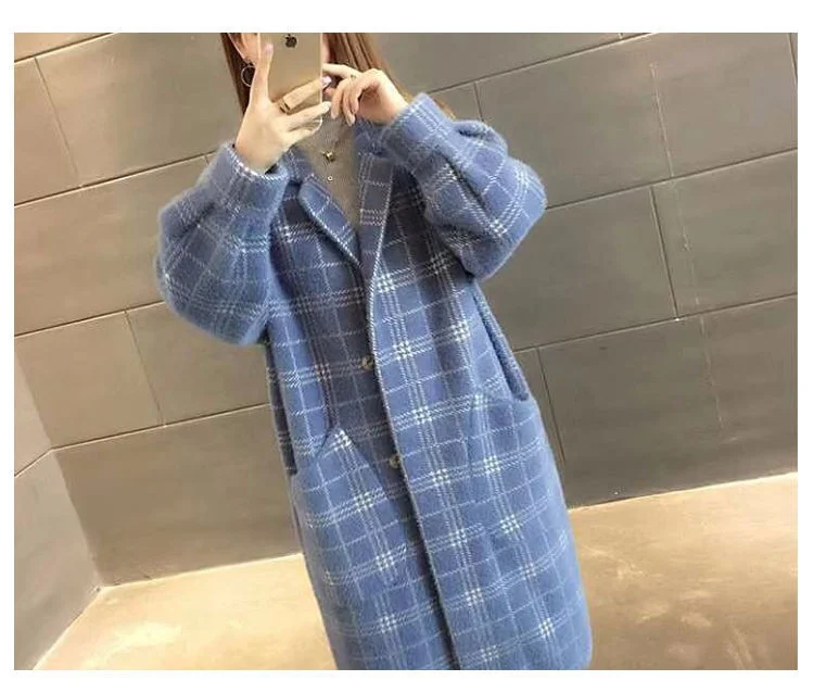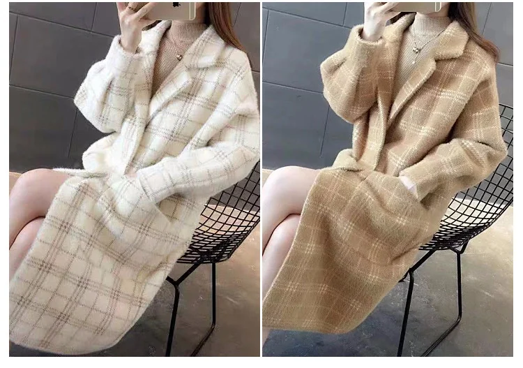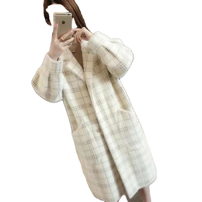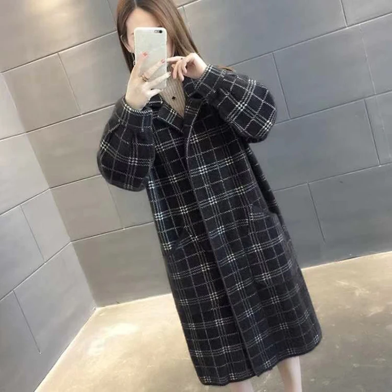 Пальто кашемировое женское весенне-осеннее, в клетку