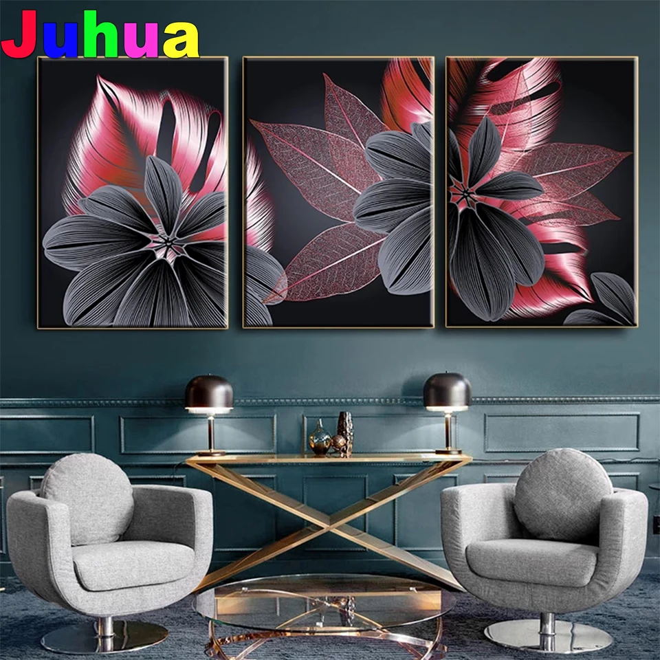 Красные и черные листья монстеры, алмазная живопись «сделай сам», Алмазная мозаика, полная квадратная/круглая дрель, 5d алмазная вышивка, скандинавские картины