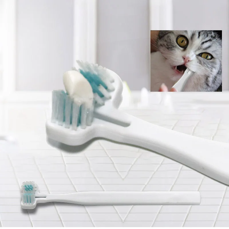 Зубная щетка для кошек, с двумя головками, с несколькими углами, 1 шт.