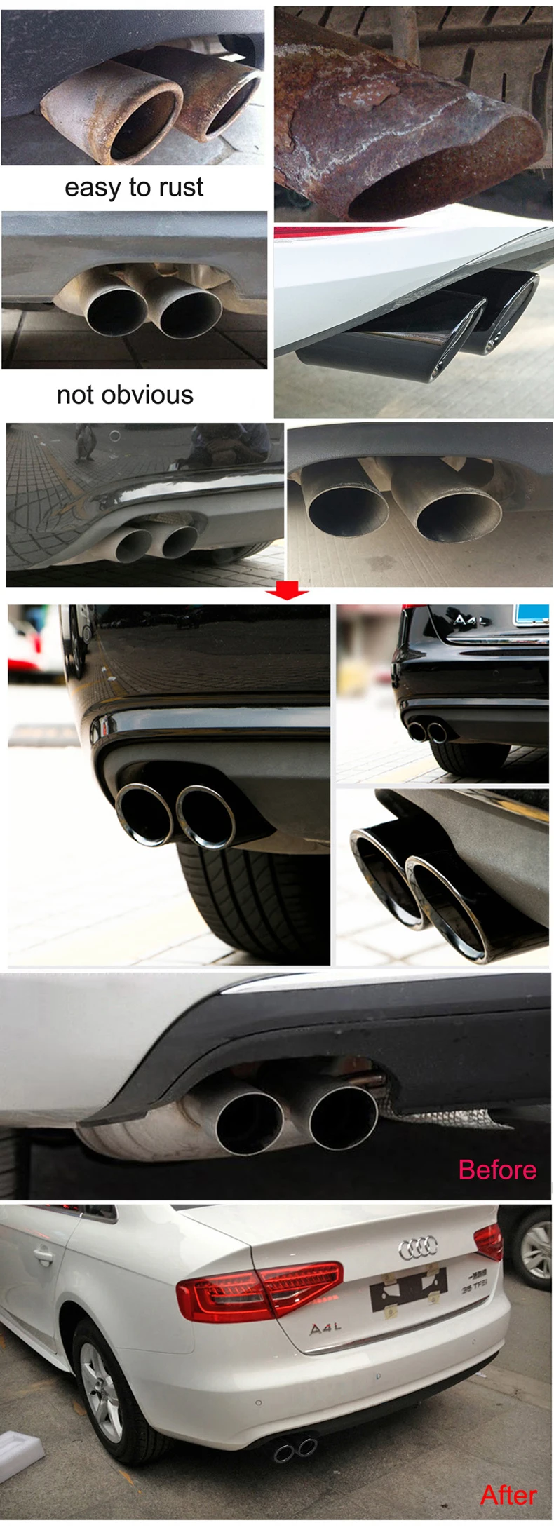 1. Высокое качество и 100% новый бренд2. Материалы: изготовлены из высококачественной нержавеющей стали 304, никогда не ржавеют, лучшее качество!3. Многократная полировка, яркая как зеркало, подчеркивающая благородное качество4. Глушитель имеет съемный глушитель, который поможет вам настроить звук так, как вы бы хотели.5. Многократная полировка, яркая как зеркало, подчеркивающая благородное качество.6. Идеально украсит выхлопную трубу вашего автомобиля7. Простая установка, без винтов и без сверления