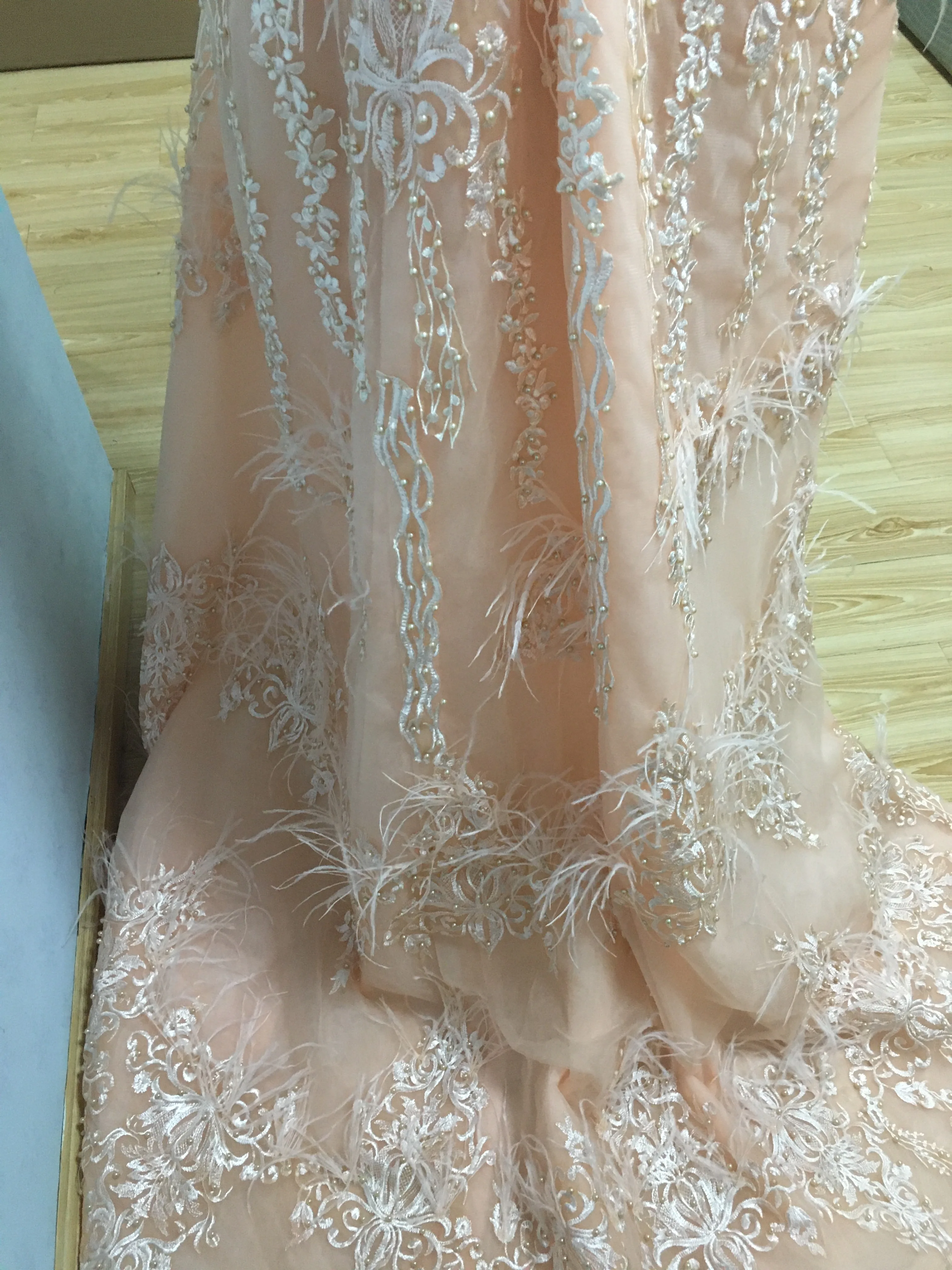 Ткань длиной один метр с аппликацией из бисера, кружевное перо 100*100 см