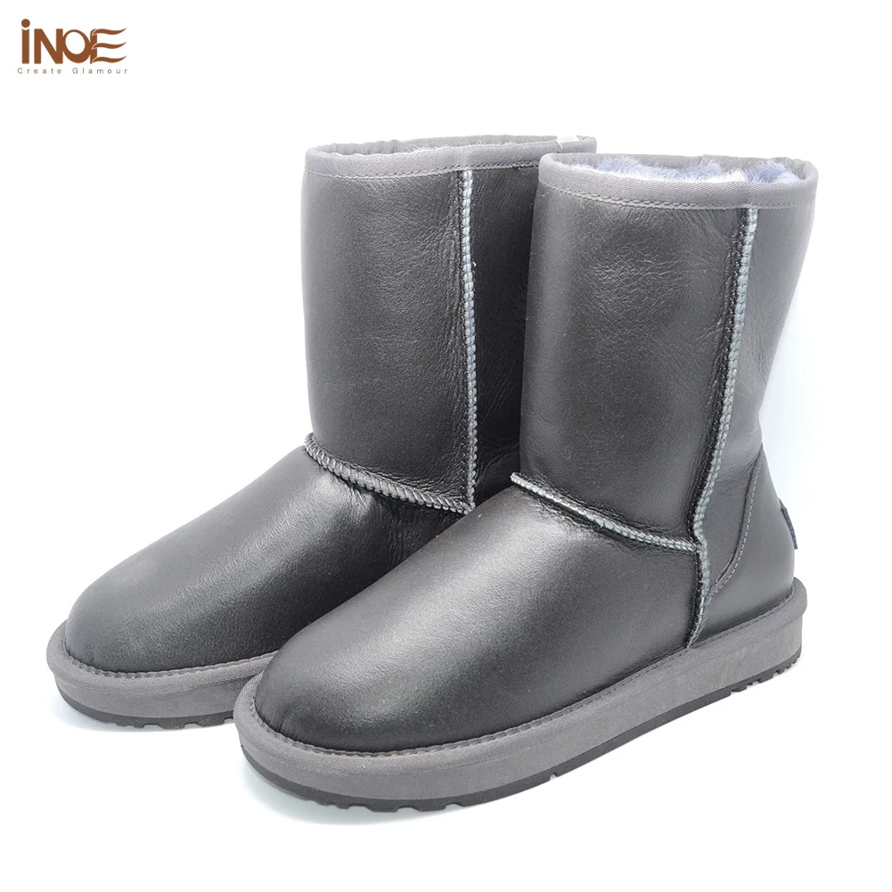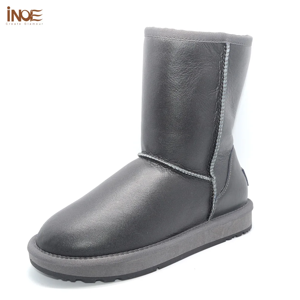 INOE Водонепроницаемые женские зимние зимние ботинки до середины икры из натуральной шерсти на подкладке из овечьего меха из натуральной шерсти теплые зимние ботинки до середины икры теплая обувь серый