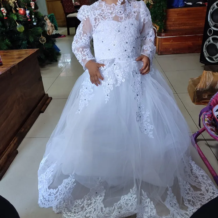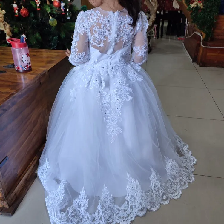 Белое Цветочное платье для девочек на свадьбу, Тюлевое кружевное платье принцессы с коротким рукавом, платье для первого причастия, для детской вечеринки