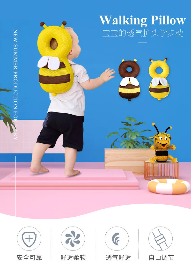 Подушка для защиты головы от падения, дышащая, с Пчелкой, для малышей, подголовник для малышей