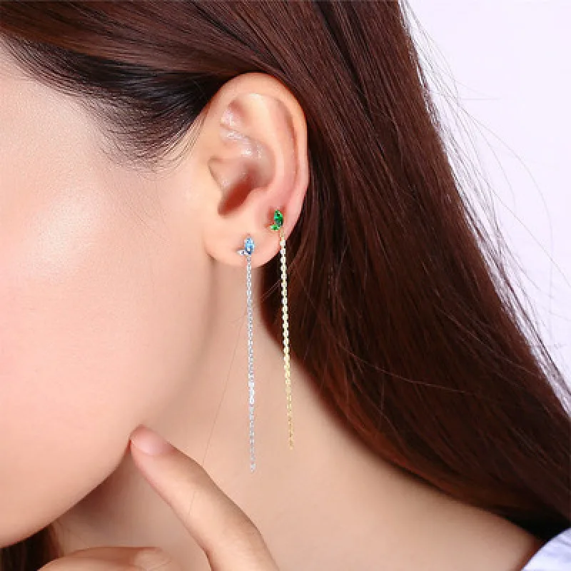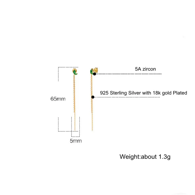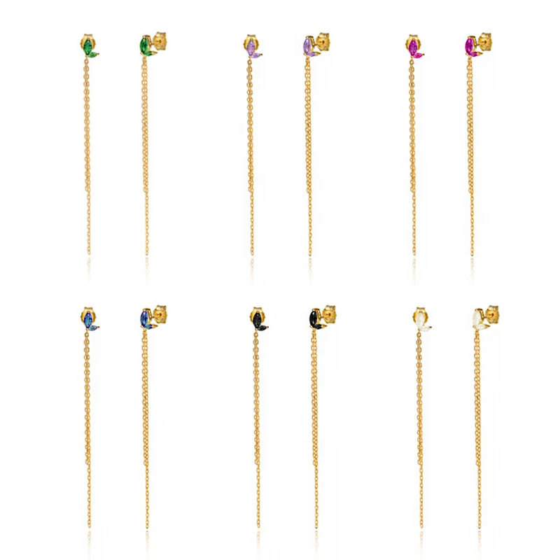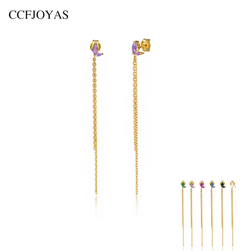 Женские серьги-гвоздики CCFJOYAS, из стерлингового серебра 925 пробы, с двумя листьями и зеленымбелымчернымфиолетовым цирконием, простая Золотая цепочка