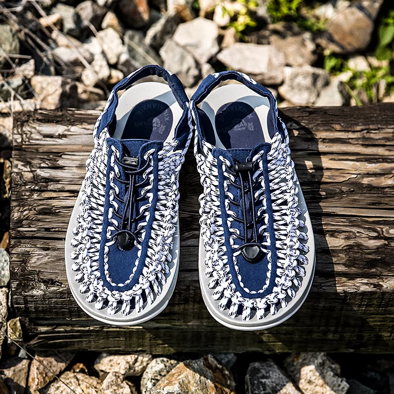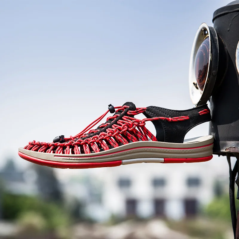 Летние мужские плетеные модные дизайнерские мужские сандалии ручной работы повседневные пляжные сандалии дышащие тапочки с отверстиями на мягкой подошве