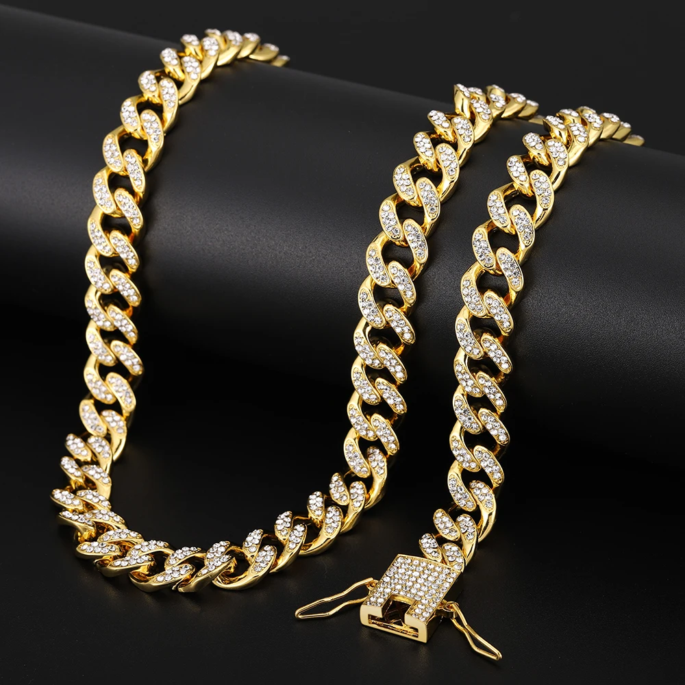 Цепочка для мужчин, хип-хоп, ожерелье с кубинским цирконием, 2 шт., 13 мм