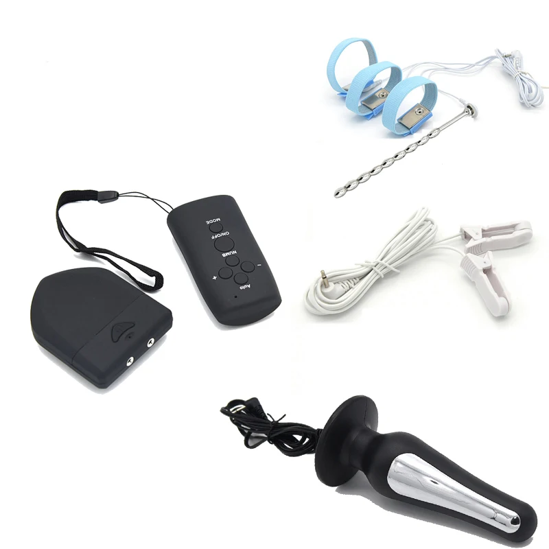 Электрошоковые Кольца для пениса, уретральный звук, катетер целомудрия, электрическая стимуляция, зажимы для сосков, анальная Анальная пробка, БДСМ, секс-игрушки