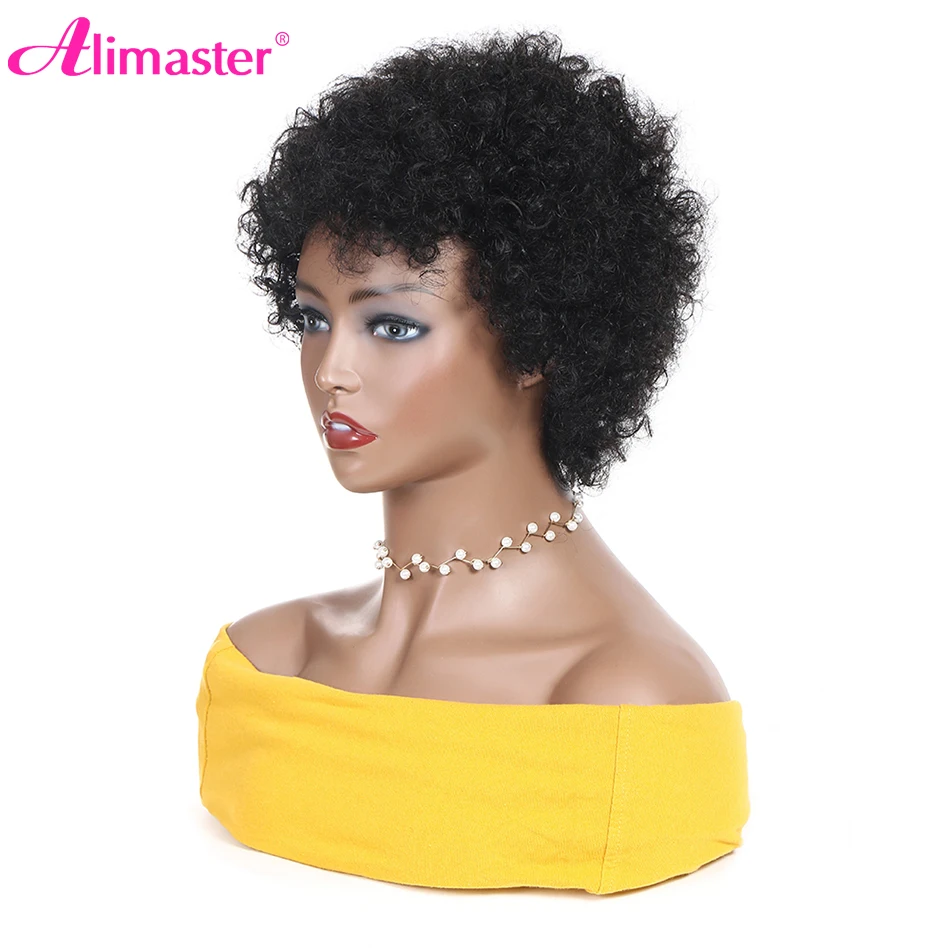 Плотный афро курчавый кудрявый короткий Боб Пикси стрижка тупые парики с челкой для чернокожих женщин дешевый парик из натуральных волос