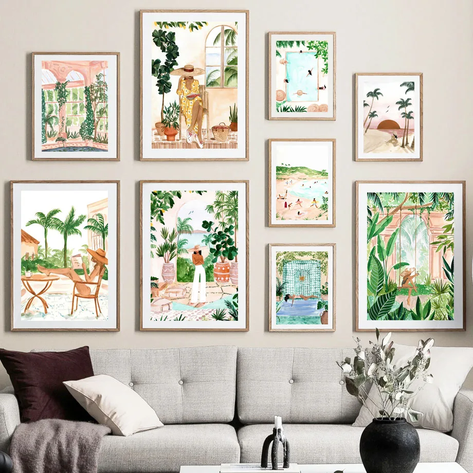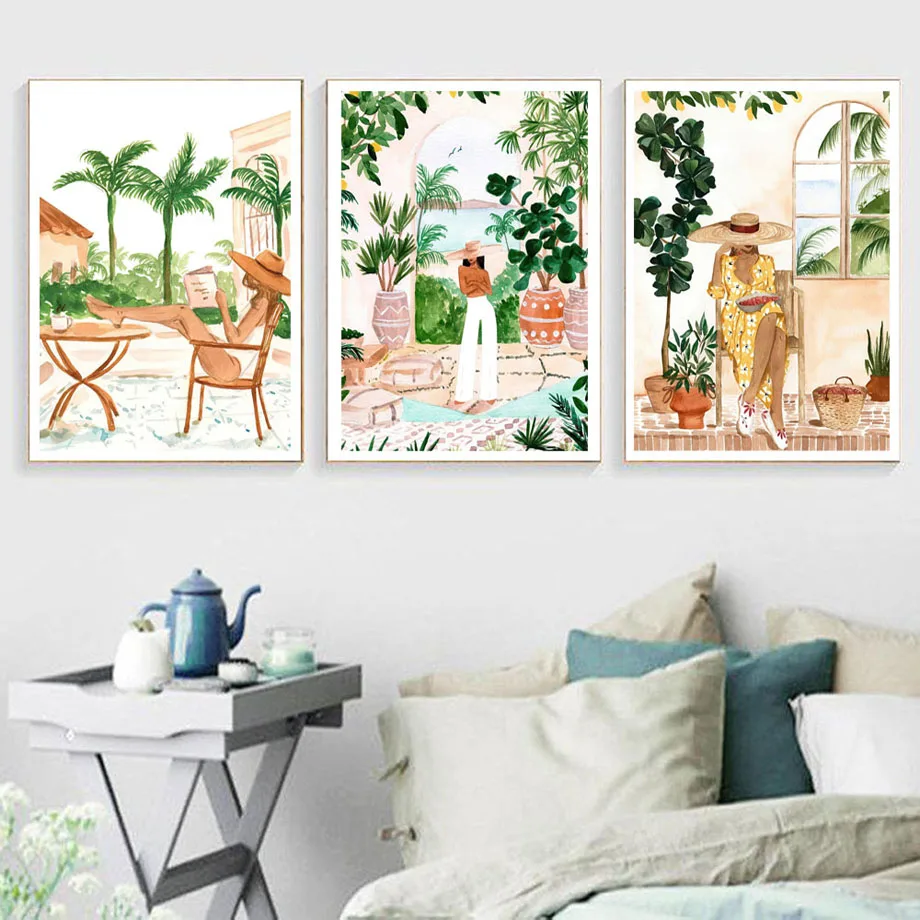 Гавайский пальмовый лист Марокко девушка Бохо растения настенная живопись холст скандинавские плакаты и принты настенные картины для декора гостиной