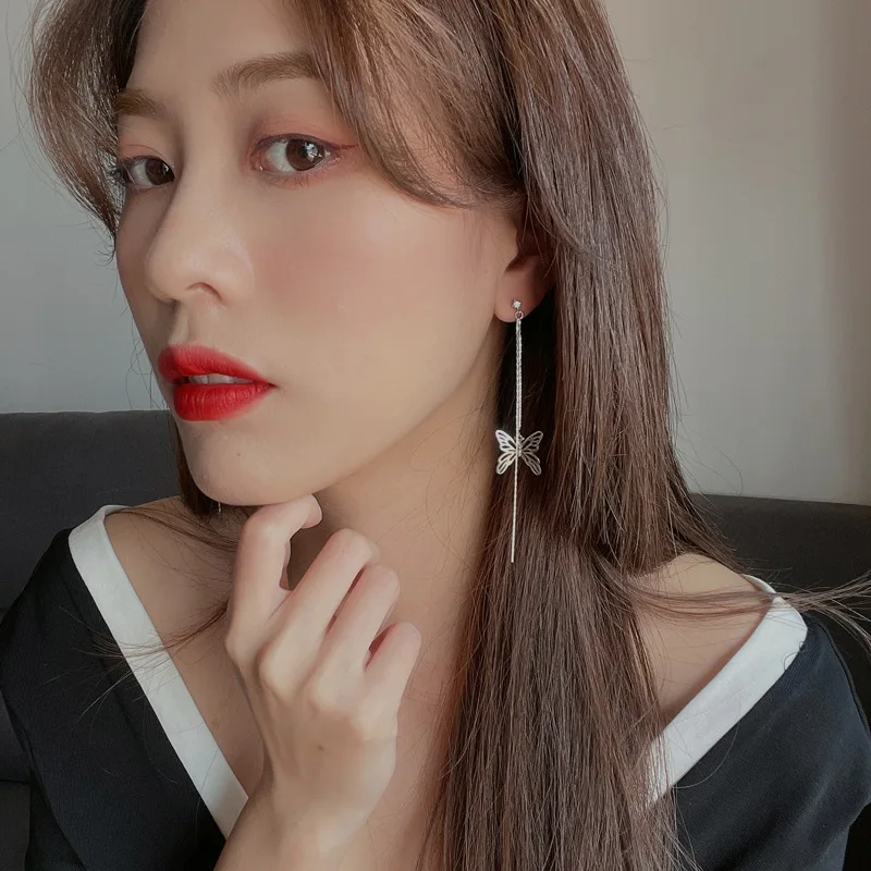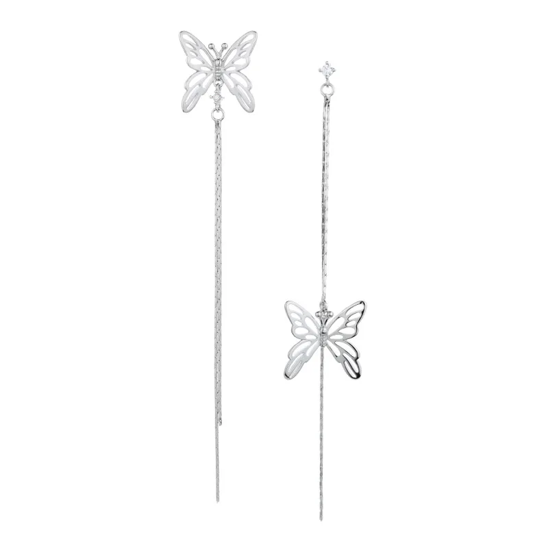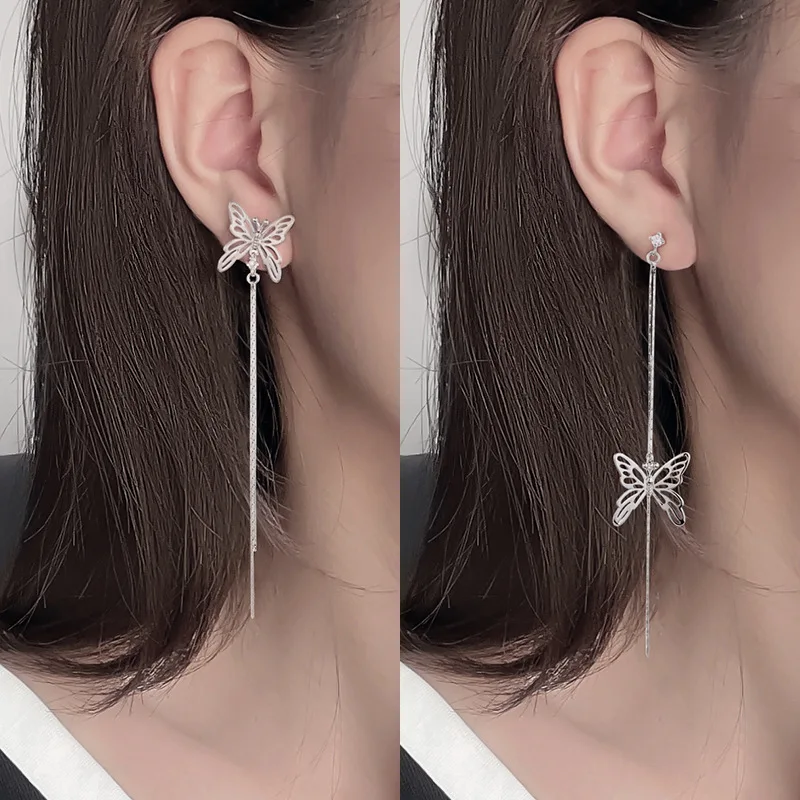 CIAXY 925 стерлингового серебра Асимметричная кисточкой полые бабочка серьги для женщин, супер длинными ушами линии серьги, модное ювелирное изделие