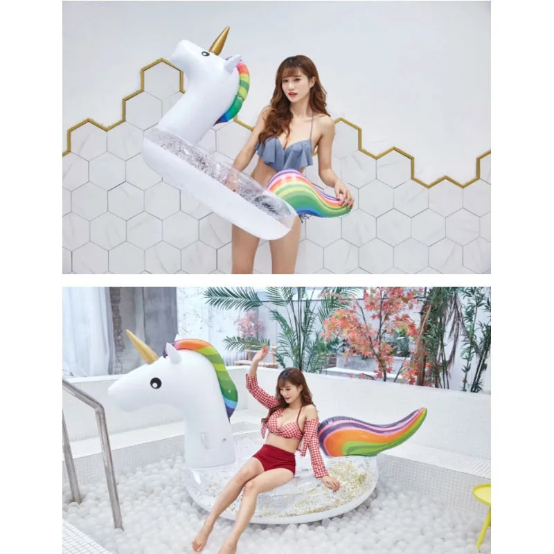Блестящий надувной спасательный буй в виде единорога из ПВХ, плавающее кольцо для плавания, матрас для плавания, для моря, для отдыха на открытом воздухе, плявечерние