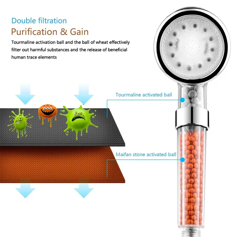 2. Отрицательные ионные камни составляют систему фильтров для очистки душевой воды, эффективного устранения вредного хлора и его паров, уменьшения остаточных примесей в воде. Улучшает сухие волосы и кожу, уменьшает секрецию масла, повышает жизнеспособность клеток, делает вашу кожу более гладкой и Уменьшает выпадение волос.
