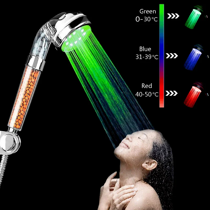 Насадка для душа с фильтром, светодиодная, энергосберегающая, 3 цвета, автоматическая ионная насадка для душа под высоким давлением