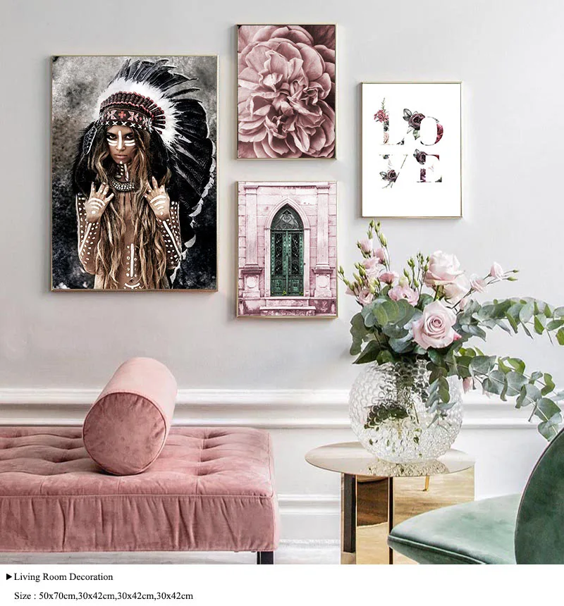 Розовый пион цветок семья картина плакат в скандинавском стиле Севе...