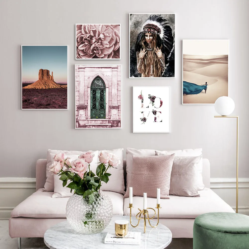Марокканский настенный постер на холсте с розовым лотосом ворота ла...