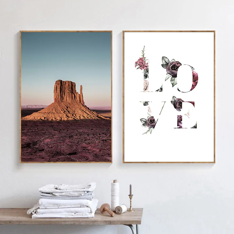 Монумент долина сухой цветок Природа Пейзаж картина плакат в сканди...