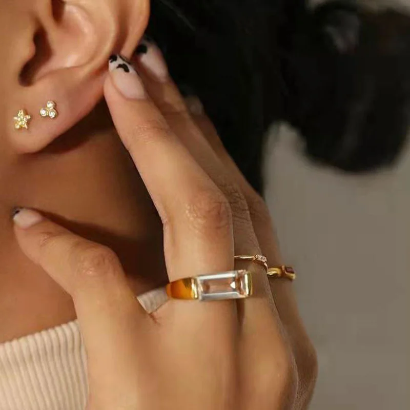 Корейский дизайн без ушных отверстий циркониевые геометрические бок...