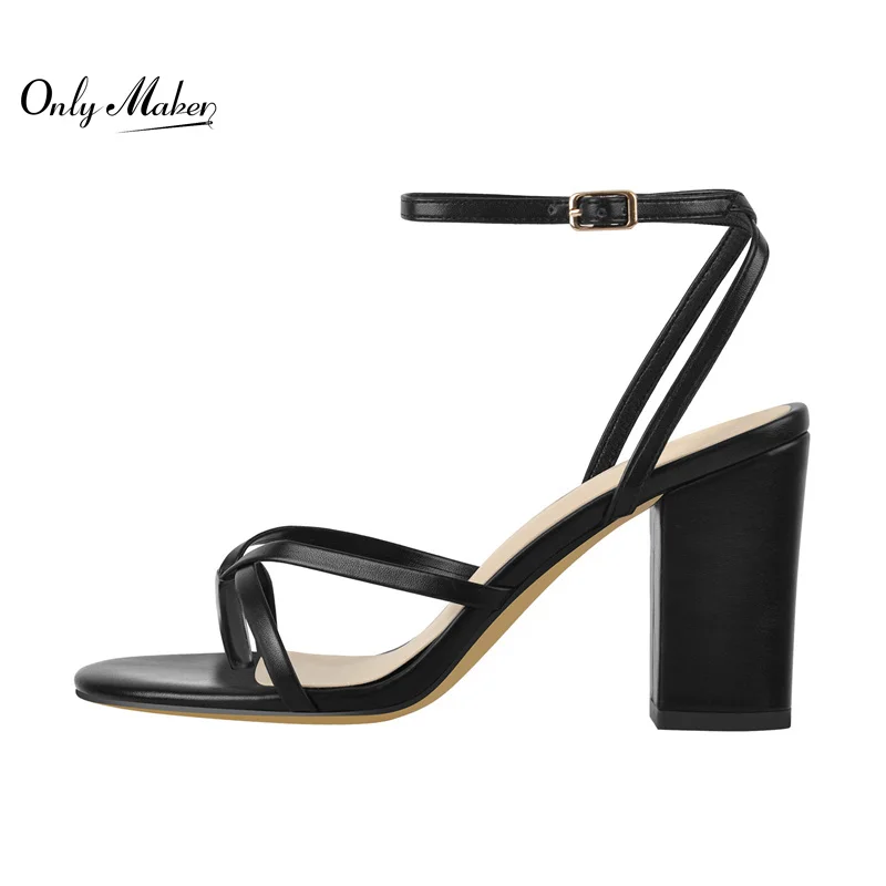 Сандалии Onlymaker Женские на высоком каблуке, шлепанцы, матовые черные босоножки с круглым открытым носком, с ремешком вокруг щиколотки, с перекрестной завязкой, на массивном каблуке