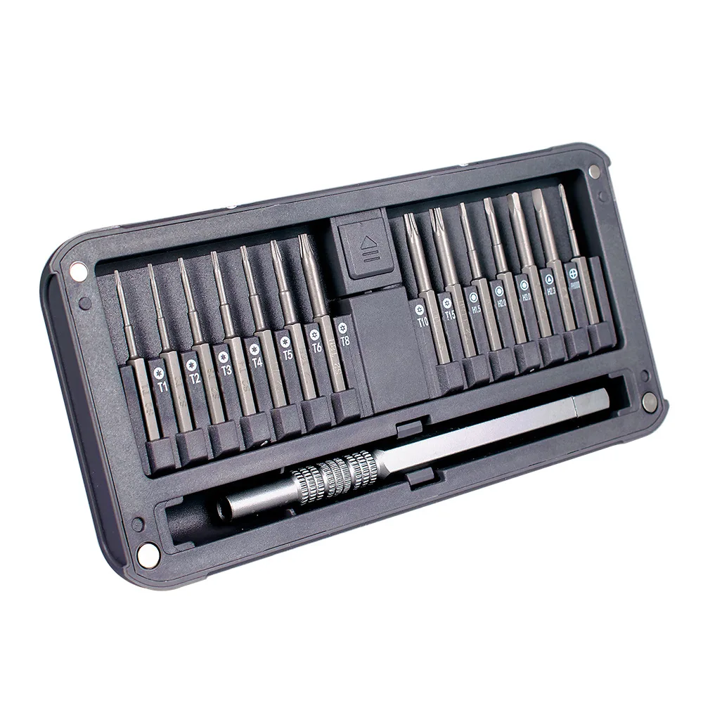 Информация о наборе отверток 30 в 1: 2 разборки аксессуары1 х алюминиевая ручка1 х гибкий удлинитель 28 насадки для отверткиPhillips: PH000 PH00 PH0 PH1 PH2Толщина лезвия: SL1.5 SL2.0 SL3.0Trox:T1 T2 T3 T4 T5Trox с отверстием: T6H T8H T10H T15HПятиугольной: ☆ 0,8 ☆ 1,2 ☆ 1,6Болты с шестигранной: H1.5 H2.0 H3.0Три точки: Y0.6 Y3.0Треугольник: △ 2,3«U» форма: U 2,6Средний: W2.6