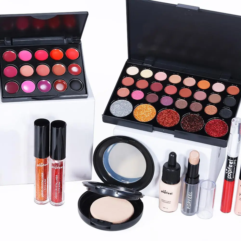 Набор для макияжа, 27 шт., матовая помада, профессиональная палитра теней для век, тушь для ресниц, подарок с косметичкой, дорожная портативная, стойкая