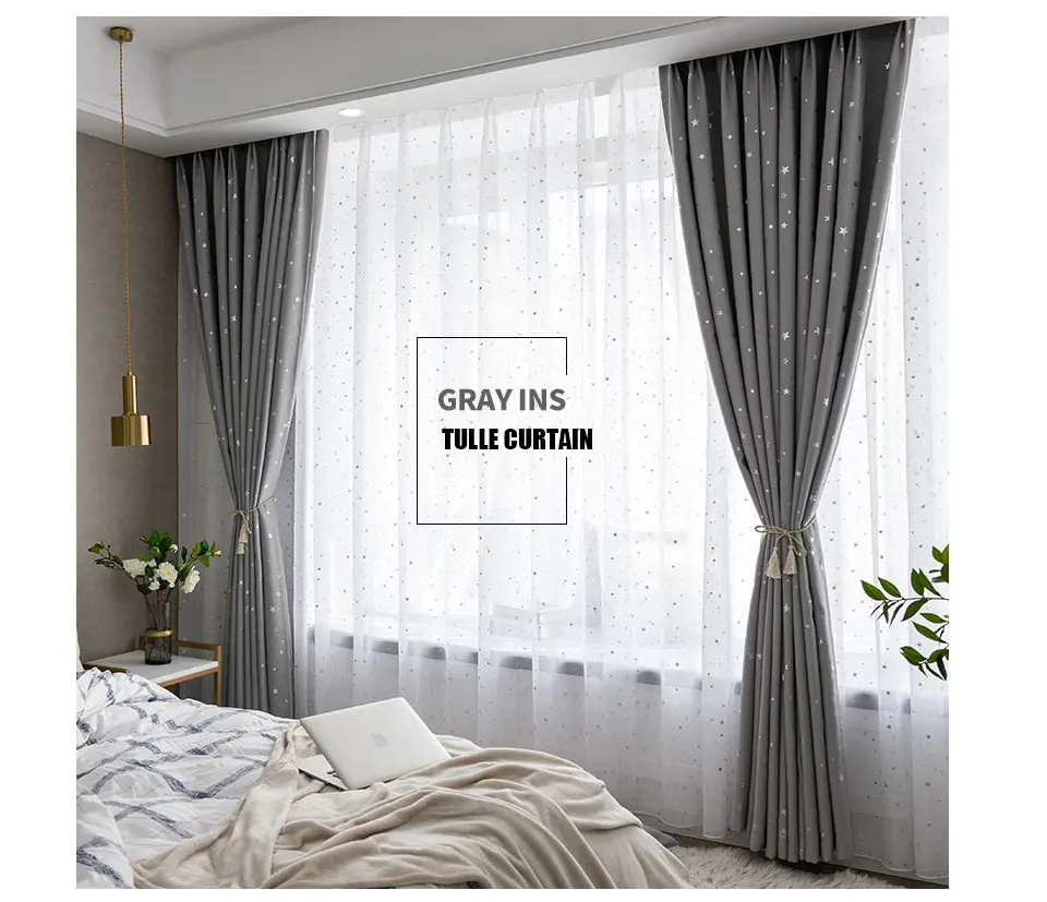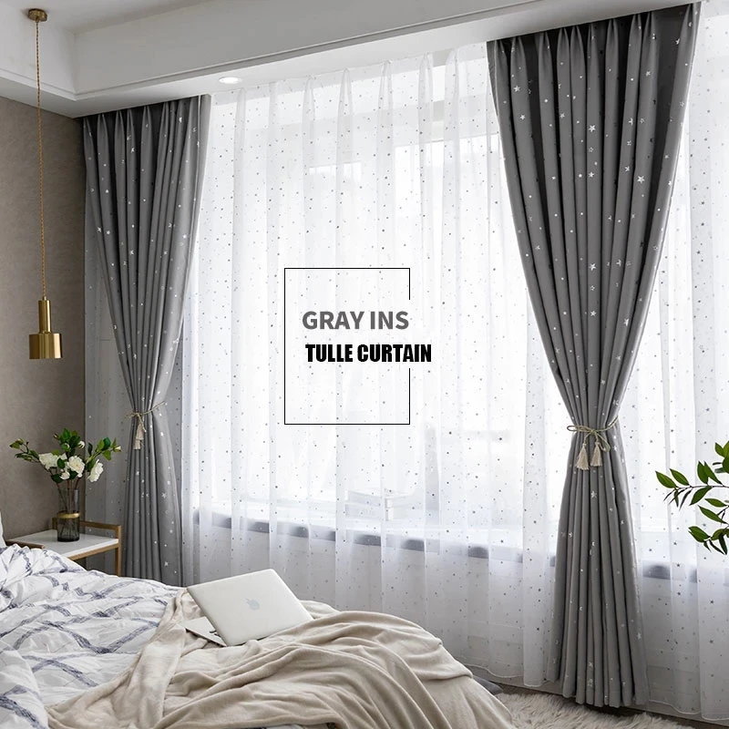 Современные тюлевые занавески со звездами для гостиной, спальни, ок...