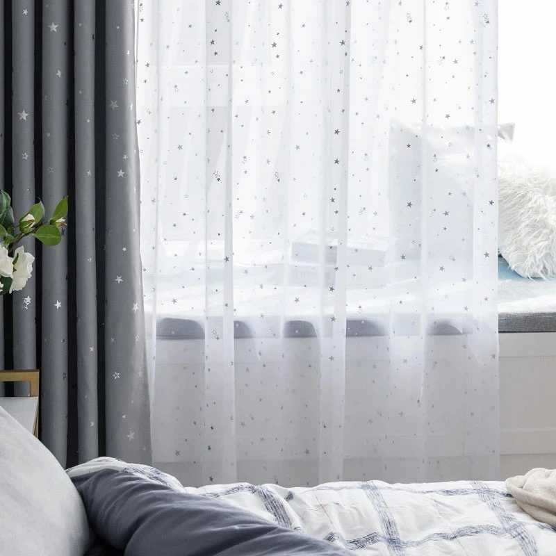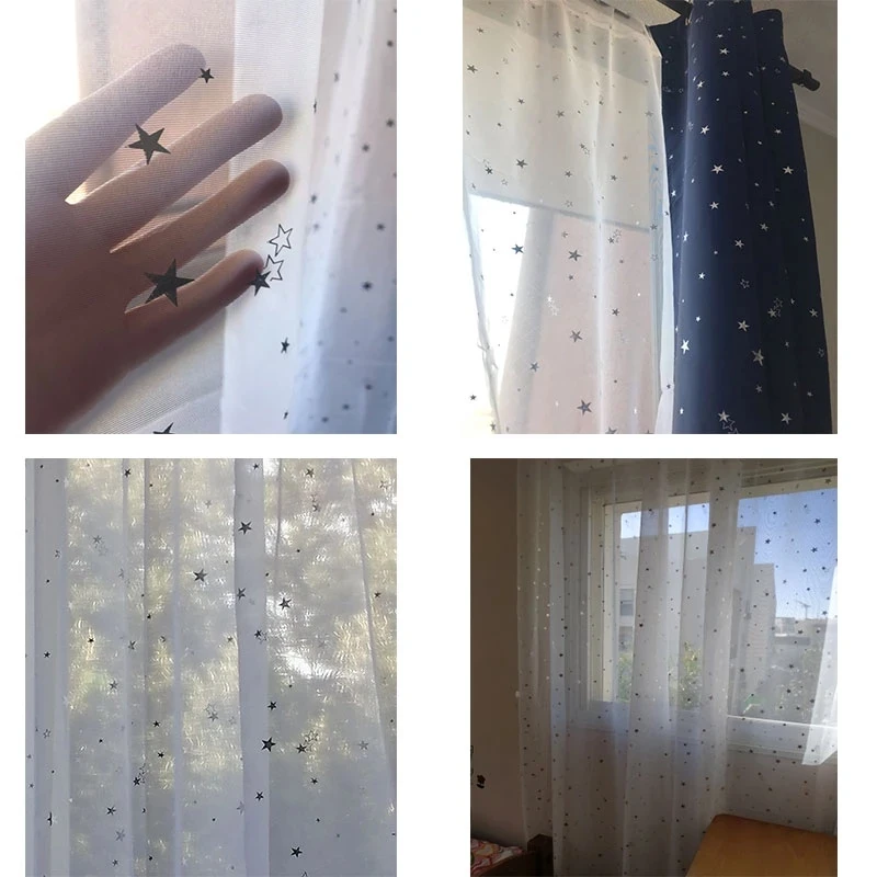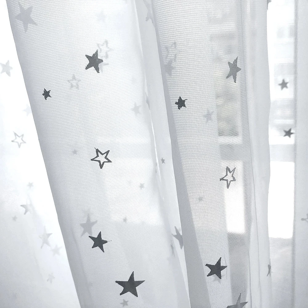 Белые Шторы со звездами, сетчатая занавеска на окно, тюль, современ...