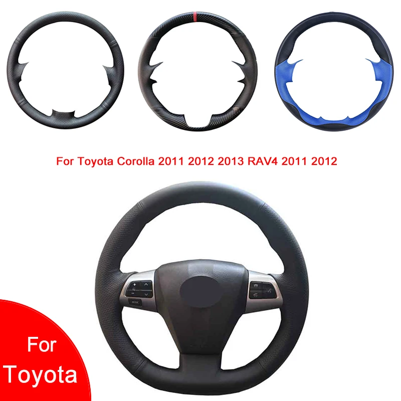 Дышащие удар Мужская прошитая вручную обувь черного цвета из искусственной кожи чехол рулевого колеса автомобиля для Защитные чехлы для сидений, сшитые специально для Toyota Corolla 2011 - 2013 RAV4 2011 2012