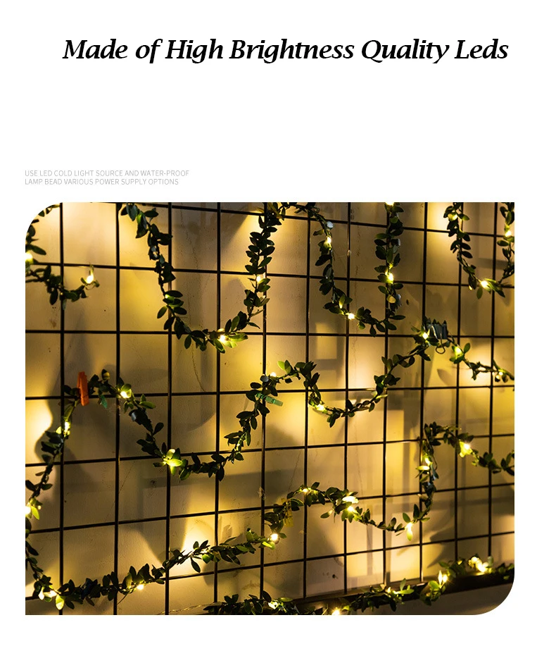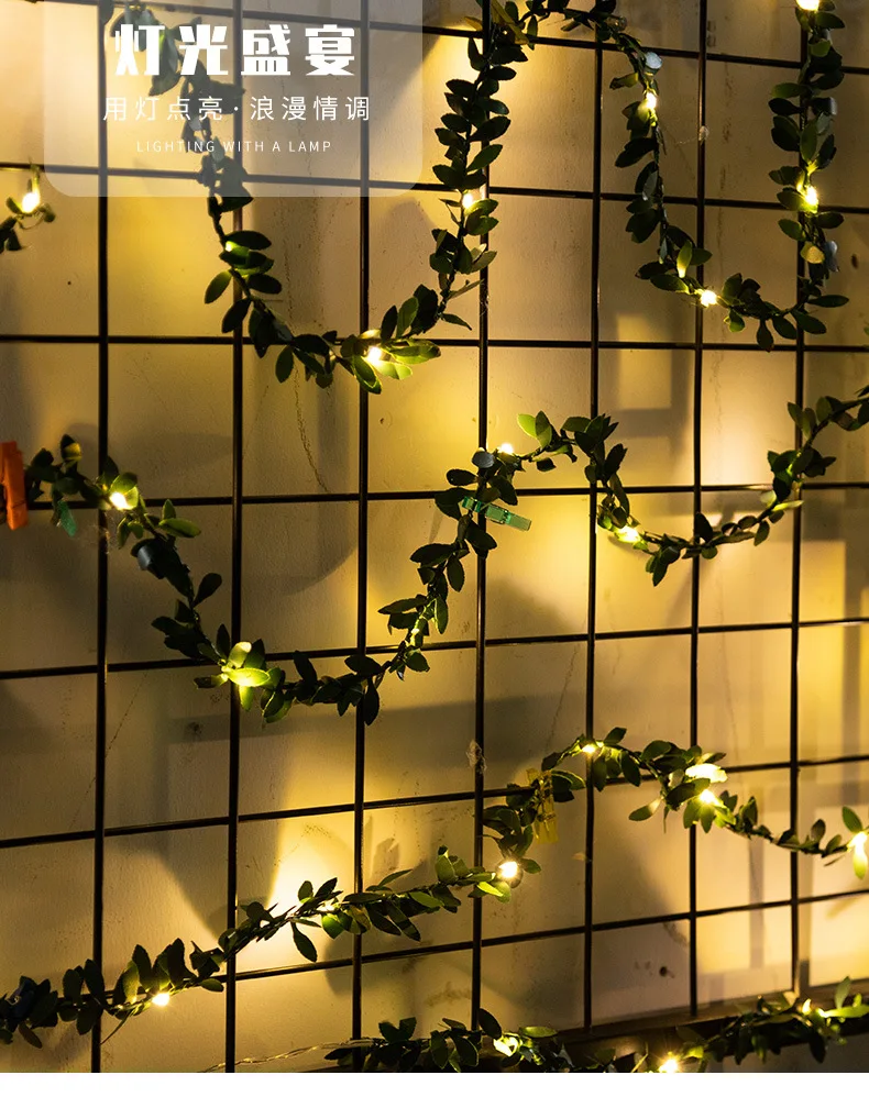 Имитация ротанга лист гирлянда Сказочный светильник Декор LED медная проволока струнный светильник s для свадьбы лесной стол Рождественское украшение
