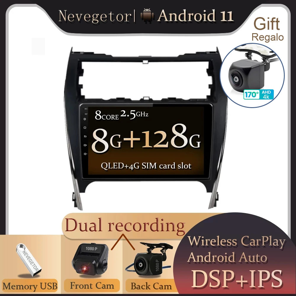 Автомагнитола 8 ГБ + 128 ГБ, Android 11, DSP для Toyota Camry 7 50 55 2012- 2017, мультимедийный видеоплеер, 2020, навигация GPS, 2 din