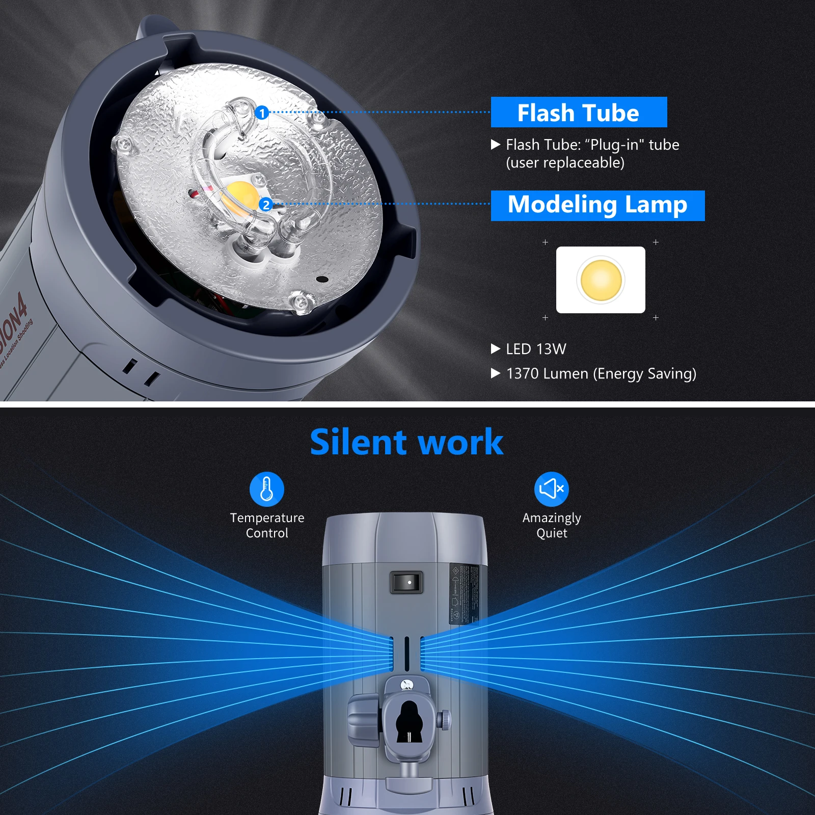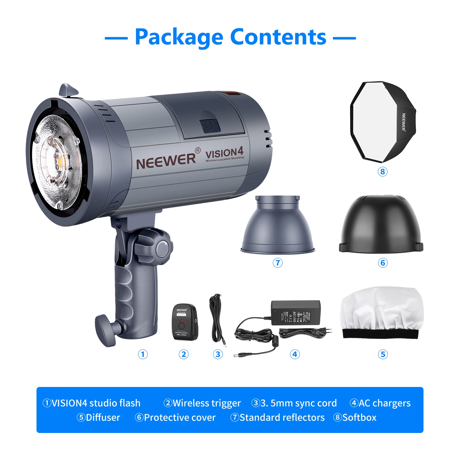 Студийный стробоскоп Neewer VISION4 специально разработан для удобной аккумуляторной съемки.