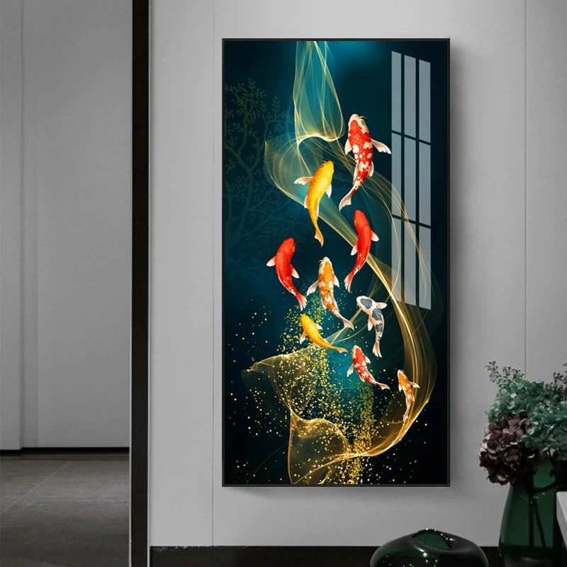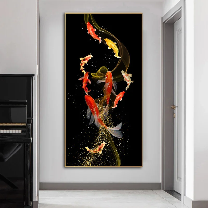 Картина на холсте Lucky Golden Carp Fish, настенная живопись для го...
