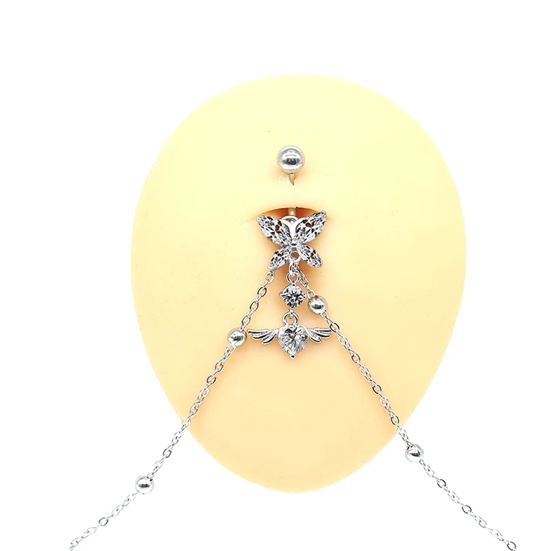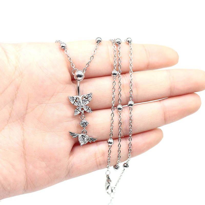 Цепочка на талию, с бабочкой, сердцем, с фианитом, висячая, украшение для пирсинга живота, бижутерия пирсинг пупка