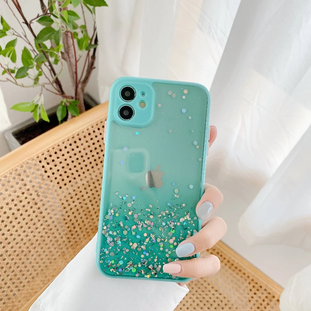 Роскошный Радужный Блестящий блестящий чехол для телефона iPhone 11 12 Pro Max XS XR X 6 S 7 8 Plus SE Mini Bling Прозрачный Чехол