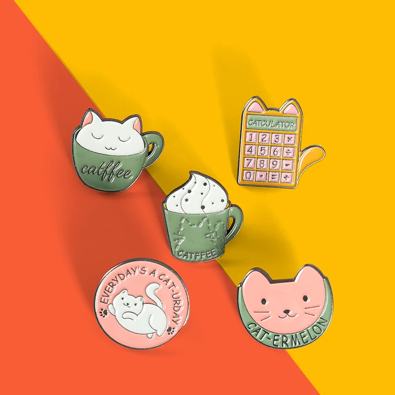 Милые эмалевые броши на заказ в виде кофейного мороженого, чашки, кошки, калькулятор, значки на лацкан, сумка, Мультяшные животные, ювелирные изделия, подарок для ребенка, друга