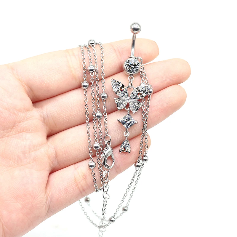 Модная цепь на талию CZ Висячие бабочка цепочка для живота пирсинг тела ювелирные изделия пирсинг цепочка для живота кольцо для пупка с цепочкой