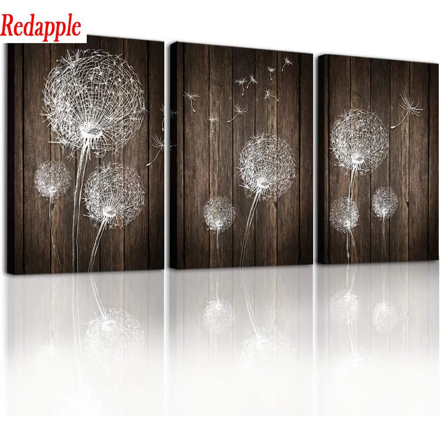 Триптих Одуванчик цветок 5D Diy Алмазная вышивка крестиком полная картина по номерам фотография