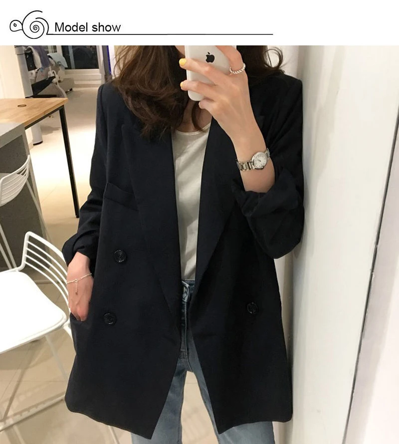 Женский двубортный пиджак, Осенний Свободный Повседневный блейзер с...