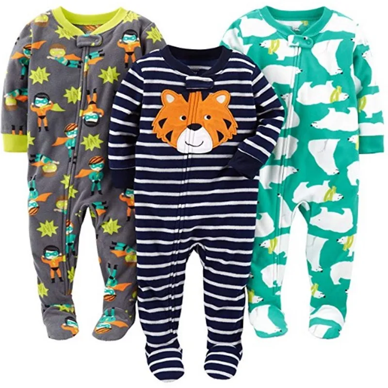 Детские комбинезоны для 2-4 лет, пижамы для мальчиков и девочек, детские комбинезоны из флиса и пижамы для трех детей.