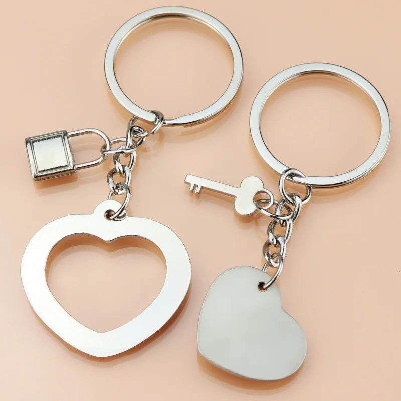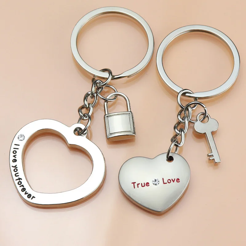 Брелок для ключей для влюбленных пар, украшение с кольцом-цепочкой, подарок на день Святого Валентина, для женщин и мужчин, 1 пара