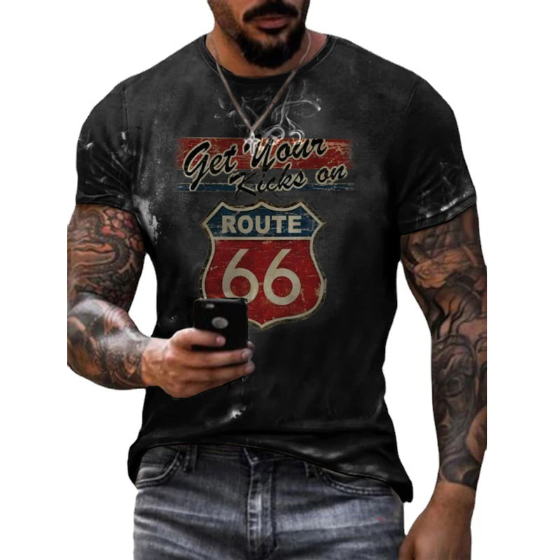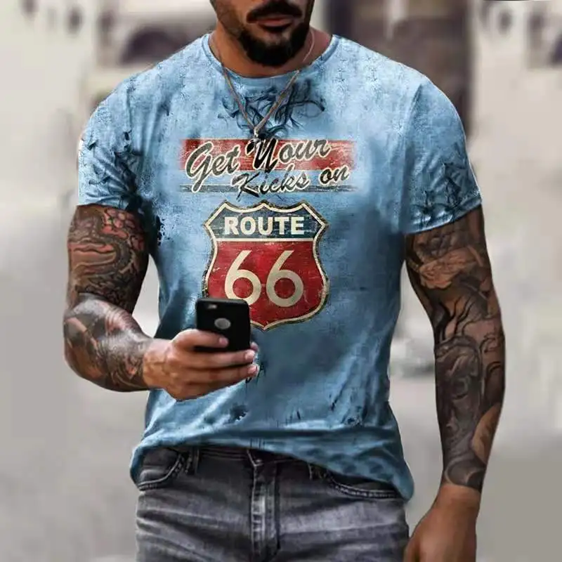 Футболка мужская с принтом шоссе 66, модная повседневная свободная ...