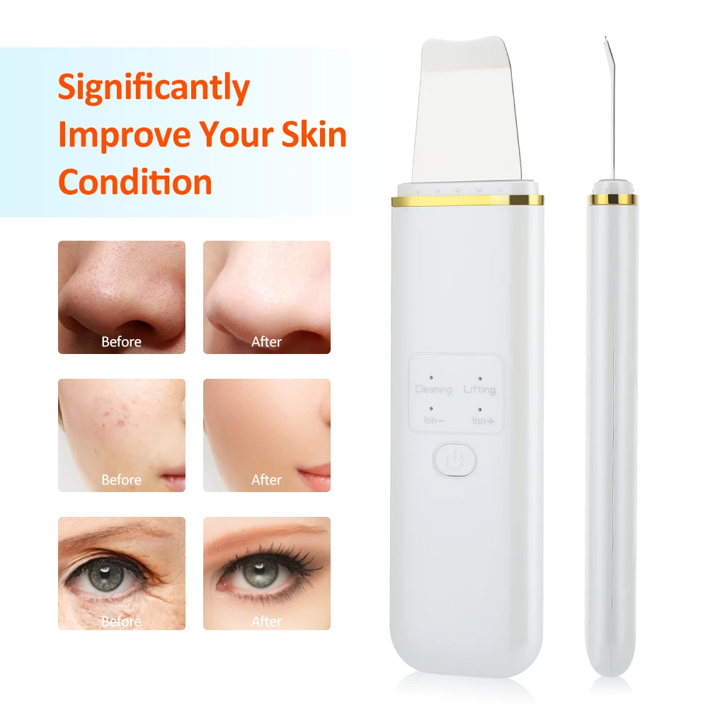 Ультразвуковой скребок для кожи лица чище EMS акне угрей очиститель пилинг очиститель для лопаты массажер для лица Уход за кожей Очиститель пор