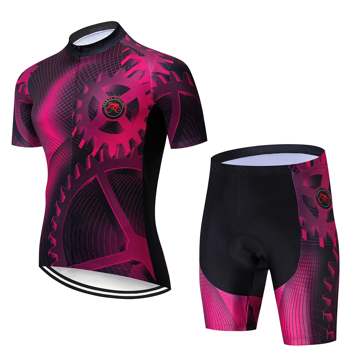 Новинка 2021, Мужская велосипедная футболка teleyi, летний комплект с коротким рукавом, Maillot 19D, шорты с нагрудником, велосипедная одежда, костюм женской одежды
