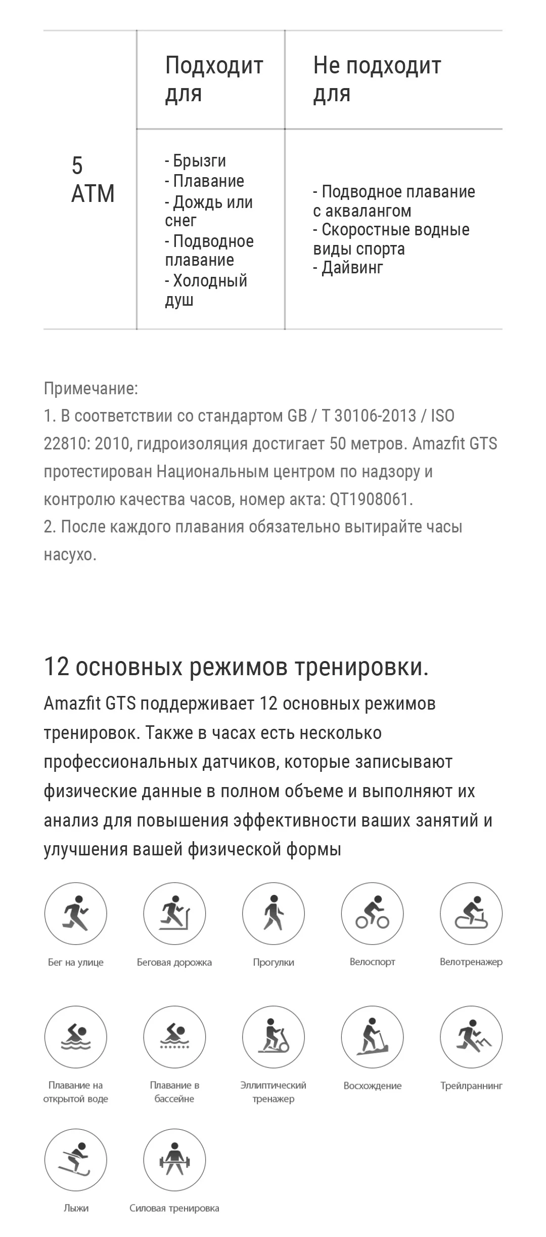 Смарт-часы Amazfit GTS, водонепроницаемые, 5 АТМ, глобальная версия...