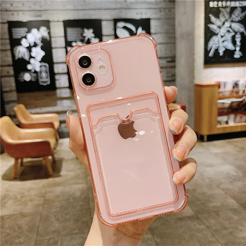 Чехол для iPhone 13, 11, 12 Pro Max, XR, XS Max, X, 7, 8 Plus, прозрачный, с отделением для карт