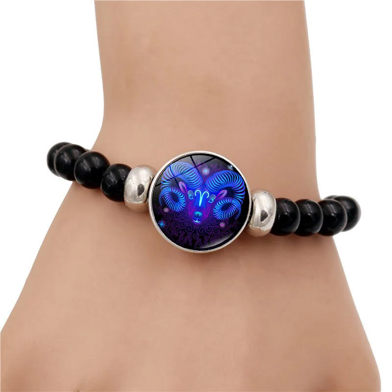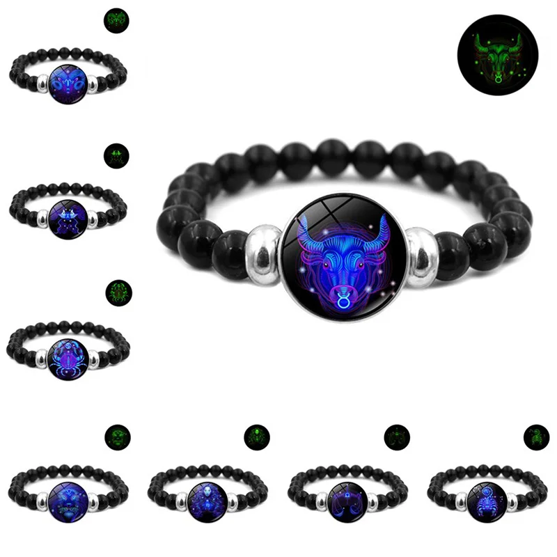 Светящийся браслет 12 созвездий, знаки зодиака, ювелирные изделия, драгоценности, Лев, весы, Скорпион, Стрелец, бусина-пуговица, браслет для женщин