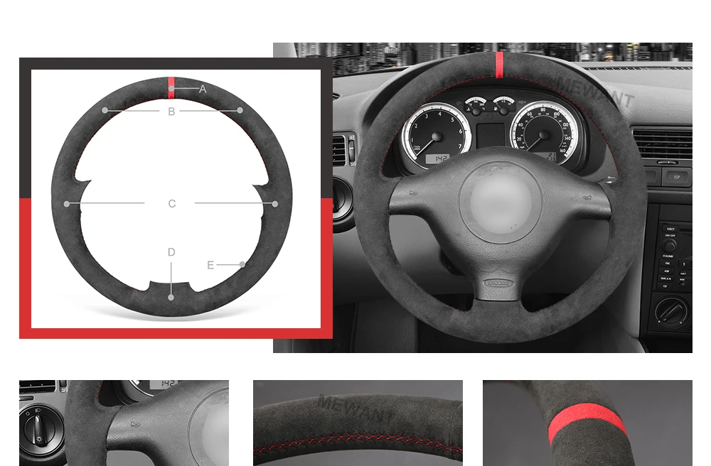 A: Красный МаркерB + C + D: темно-серая АлькантараE: Красная Нить