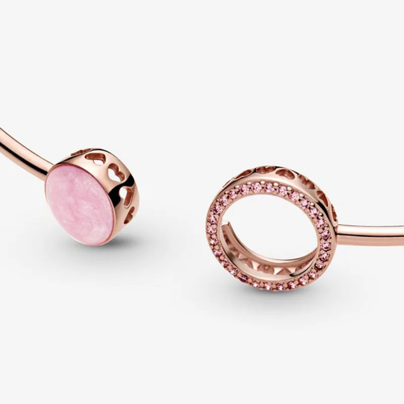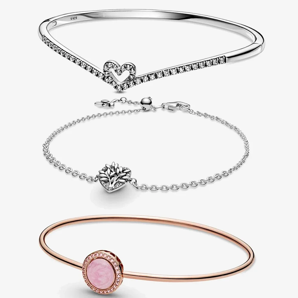 925 твердый Серебряный Розовый Вишневый браслет в форме сердца с за...