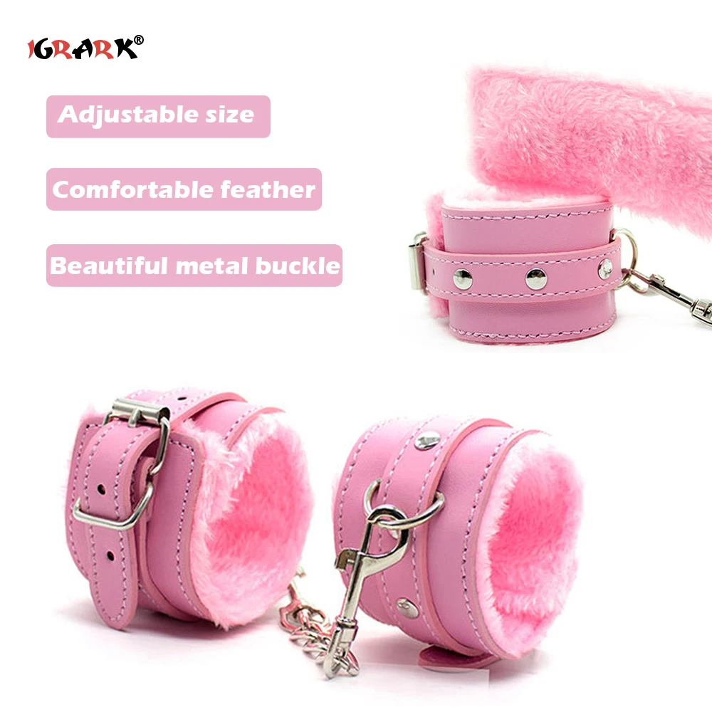 Сексуальные регулируемые плюшевые манжеты из искусственной кожи, манжеты на лодыжке, секс-игрушка для бондажа