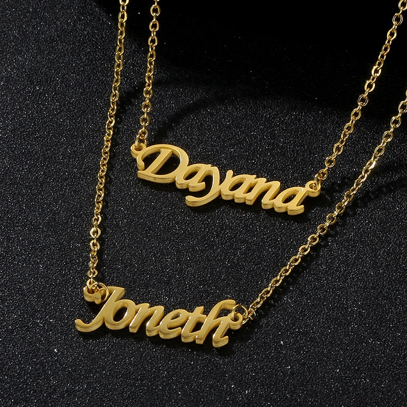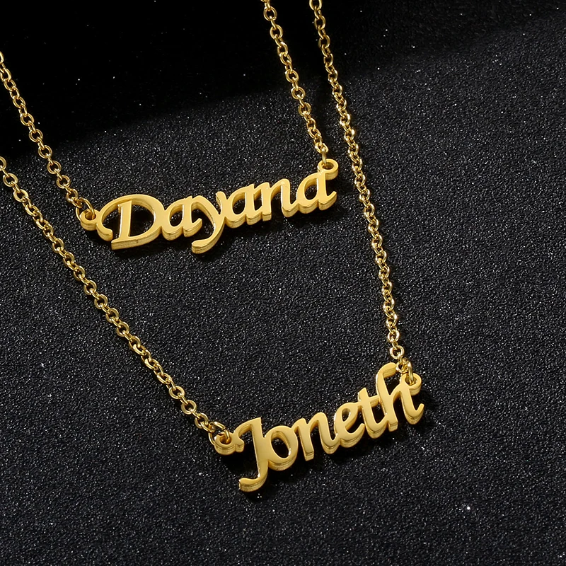 При индивидуальном заказе двойной Слои имя ожерелья для женщин по индивидуальному заказу пара ожереля из нержавеющей стали ожерелье кулон-табличка с именем ювелирные изделия